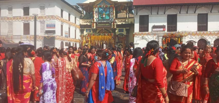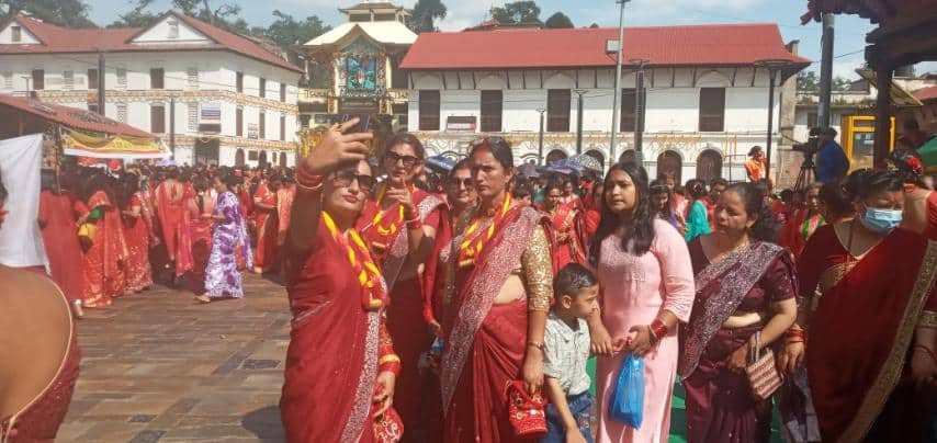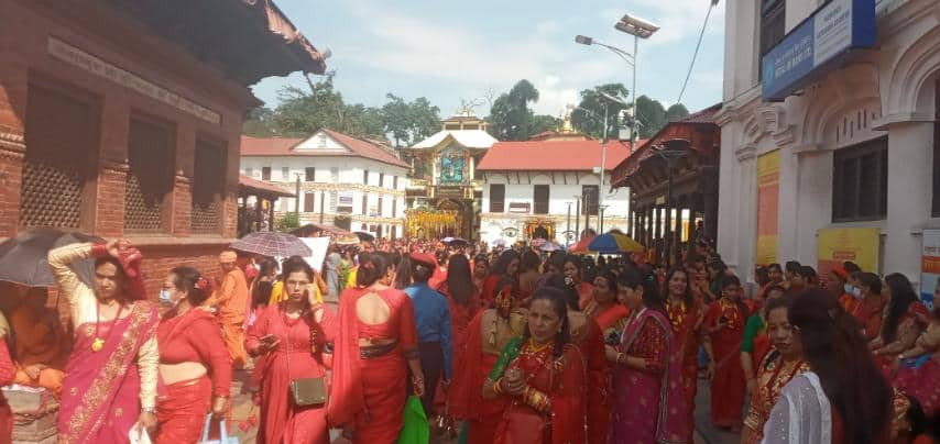 भगवान शिवको आराधना गर्दै उल्लासपूर्वक मनाउने पर्व तीजका दिन पशुपतिनाथ मन्दिरमा महिलाहरूकी भीड लागेको छ ।