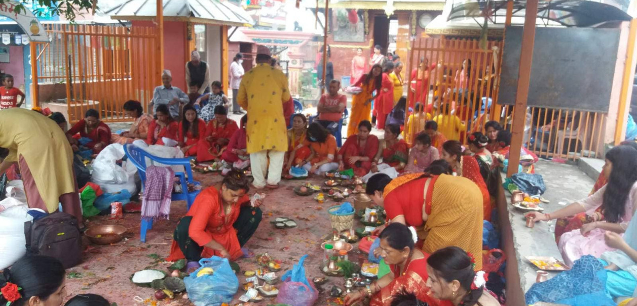 कपन बालुवाखानीको हलेसी महादेव मन्दिरमा ऋषि पञ्चमीको व्रत बस्ने महिलाहरु पुजा गर्दे