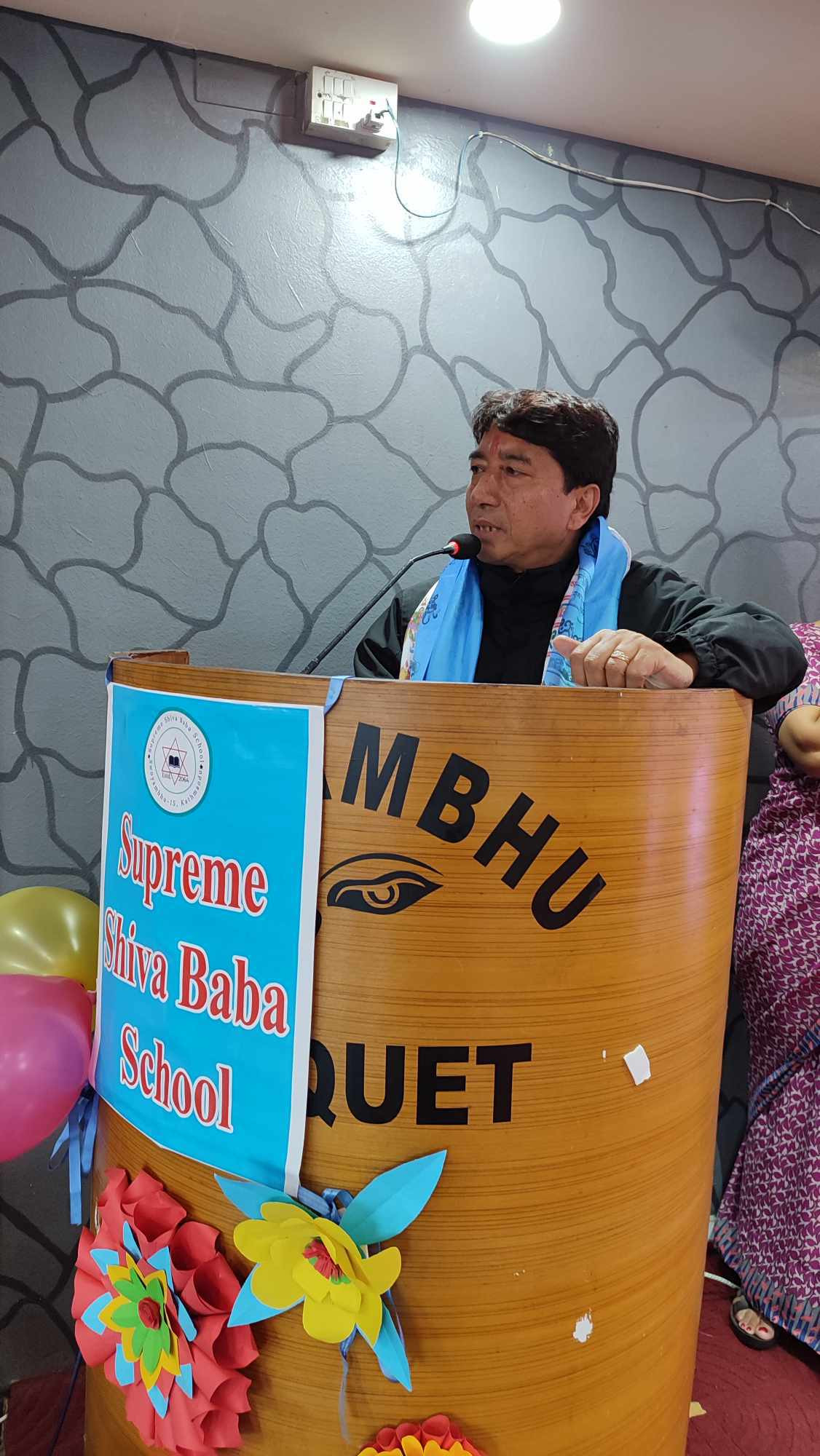 स्वयम्भू बैक्वेट स्वयम्भू काठमाडौमा सुप्रिम शिव बाबा स्कुलले एसईई २०७९ मा उत्तीर्ण भएका विद्यार्थीहरुलाई बधाई ,सम्मान तथा बिदाइ सम्पन्न गरियो । उत्त कार्यक्रममाको सभापतित्व स्कुल संचालक समिति तथा विद्यालय ब्यवस्थापन समितिका अध्यक्ष श्री ओम शंकर श्रेष्ठज्युले गर्नुभएको थियो ।सो कार्यक्रममा प्रमुख अतिथिको रूपमा पुर्व कामापा प्रवत्ता तथा १५ वड।का लोकप्रिय अध्यक्ष श्री इश्वर मान डङोलज्यु रहनु भएको थियो ।उत्त कार्यक्रममा स्कुलका सिइवो श्री श्याम श्रेष्ठ र प्रधानाध्यापक श्री नारायण गोपाल श्रेष्ठको पनि उपस्थिति रहेको थियो । उत्त कार्यक्रममा अतिथिहरुको रूपमा बिनि श्री तारापती खरेल ,श्रोत ब्यत्ती श्री डा शर्मिला पोखरेल ,पुर्व श्रोत ब्यत्ती श्री कृष्ण लुइँटेल ,वडा शिक्षा समितीका सदस्य तथा वडा सदस्य श्री मैया लक्ष्मी महर्जन ,वडाका सम्पुर्ण सद्स्यहरु ,विभिन्न संस्थाका समाजसेवीहरु ,गुरु गुरुआमाहरु ,आदरणीय अभिभावकज्युहरु र विद्यार्थी भाइबहिनीहरुको उपस्तिथि रहेको थियो।उत्त कार्यक्रममा कक्षा १० का विद्यार्थी भाइबहिनीहरुले नृत्य प्प्रस्तुत गरेर २०७९ मा परिक्षामा सफलता हासिल गर्ने विद्यार्थीहरु लाई मायाको चिनो उपहार दिनु भयो।सभापति श्री ओम शंकर श्रेष्ठज्युले सफल विद्यार्थीहरु लाई बधाई तथा भबिस्यमा उच्च शिक्षमा पनि उन्नति र सफलताको कामना गर्नु भएको थियो । स्कुलका प्रिन्सिपल श्री नारायण गोपाल श्रेष्ठज्युले सम्पुर्ण अतिथिहरु र आदरणीय अभिभावकज्युहरु लाई कार्यक्रममा स्वागत र विद्यार्थी भाइबहिनीहरुलाई बधाई दिनुभयो । उत्त कार्यक्रममा स्कुलका सल्लाहकारद्दय श्री बिनोद राजभण्डारीज्यु र श्री भवानी शंकर श्रेष्ठज्यु को पनि उपस्थित रहेको थियो। बधाई तथा बिदाइ कार्यक्रममा विद्यार्थीहरुले साँस्कृतिक झल्को दिने गरि नृत्य प्रदर्शन गरी आफ्नो प्रतिभा प्रस्फुटन गरेका थिए । कार्यक्रममा एसईई -२०७९ मा उतीर्ण विद्यार्थी भाइबहिनीहरुलाई बिद्यालयले सम्मान सहित सभापतिज्यु बाट टोकन अफ लभ प्रदान गर्नुभएको थियो ।